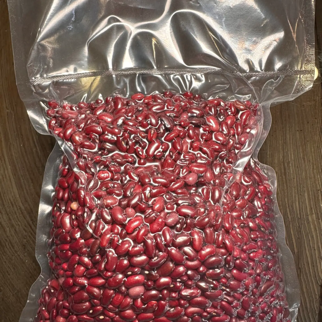 La alubia no se seca, no pierde peso y mantiene intactas sus propiedades organolépticas. Que vayan sin etiqueta comercial refuerza el mensaje de “producto de aldea”, de selección experta. El cliente no paga por un cartón bonito, paga por un kilo de oro rojo seleccionado a mano.