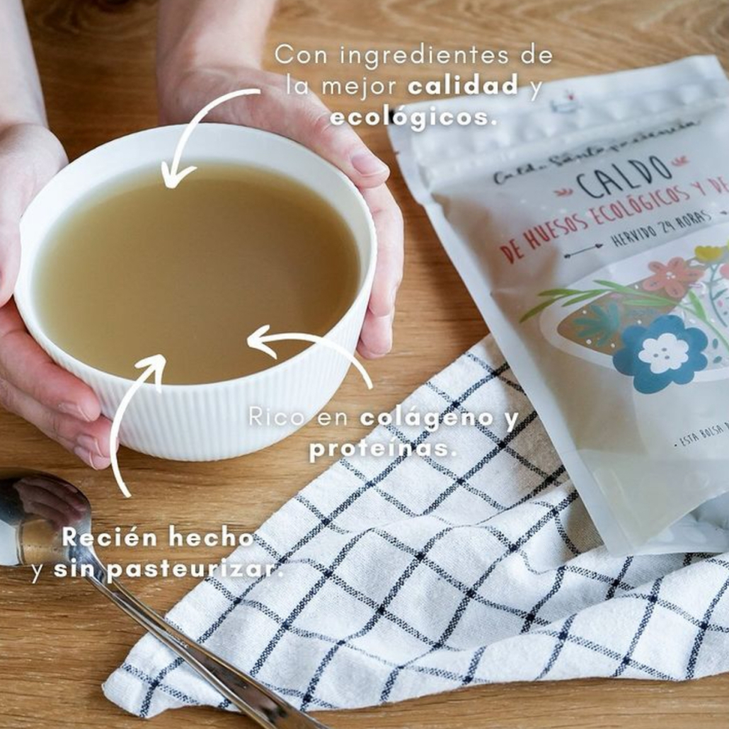 - Clean Label: Solamente contiene agua, los huesos y la sal marina. No contiene espesantes, polvos, conservantes ni aromas artificiales.
