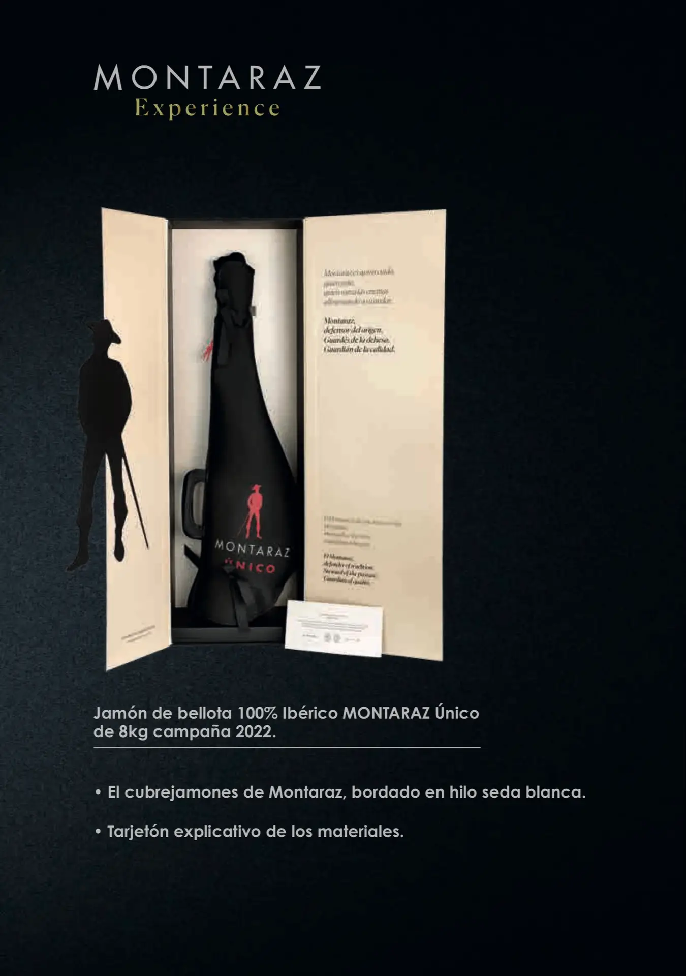 El Jamón de Bellota 100% Ibérico Montaraz Experience ÚNICO representa la cúspide de la calidad en la gastronomía española. La denominación ÚNICO distingue una selección excepcional, eligiendo solo los ejemplares de mejor conformación y grasa para el proceso de curación.