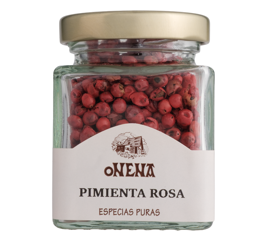 A diferencia de las pimientas tradicionales, la pimienta rosa proviene de las bayas del Schinus terebinthifolius, un árbol originario de Sudamérica. Estas bayas, secadas al sol y seleccionadas cuidadosamente por Onena, conservan su aroma delicado, color vibrante y sabor único, ideal para quienes buscan sorprender con matices nuevos en su cocina.